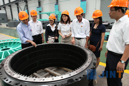 總經(jīng)理Vien(圖左一)率領(lǐng)的團(tuán)隊(duì)對(duì)加強(qiáng)型回轉(zhuǎn)支撐贊不絕口