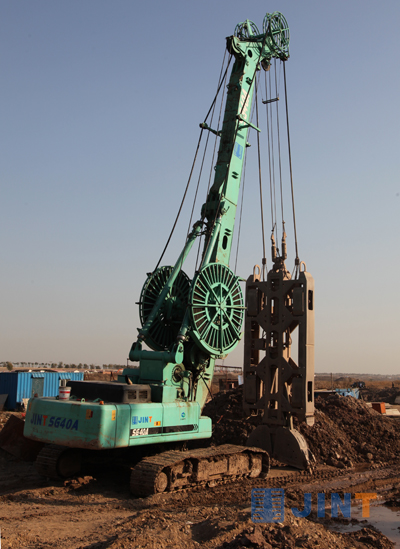 北京市南水北調(diào)配套工程大寧調(diào)蓄水庫工程是南水北調(diào)向北京市供水的關(guān)鍵工程,是北京市南水北調(diào)配套工程的重要組成部分,也是連接南水北調(diào)中線干線和北京市水網(wǎng)的紐帶。此工程項目防滲墻施工長度長,成墻面積大,工期短,施工強度較高。工地基坑設(shè)計深度25 m,連續(xù)墻寬度1 m、深度40~50 m。由于地層復(fù)雜,50 m以上粘土層、細沙層、卵石層交錯,承壓水深,臨近地鐵要求施工震動小等因素,給施工帶來不小困難。為此,施工單位特地攜帶上海金泰SG35、SG40A型等 8臺液壓連續(xù)墻抓斗來到工地,占據(jù)了工地連續(xù)強抓斗的半壁江山,憑著產(chǎn)品優(yōu)越的性能、良好的可靠性和出色的效率,金泰抓斗以每臺每天開挖200~250m3的速度,為工程的順利完成提供了保障,得到施工單位的充分肯定。