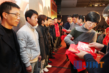 團(tuán)拜會(huì)上,公司對(duì)2011年在一線崗位辛勤耕耘、業(yè)績突出的優(yōu)秀員工和先進(jìn)班組進(jìn)行了表彰,林堅(jiān)為先進(jìn)班組頒獎(jiǎng),馬衛(wèi)東、陳雪英、徐峰等高管為優(yōu)秀個(gè)人頒獎(jiǎng)。
